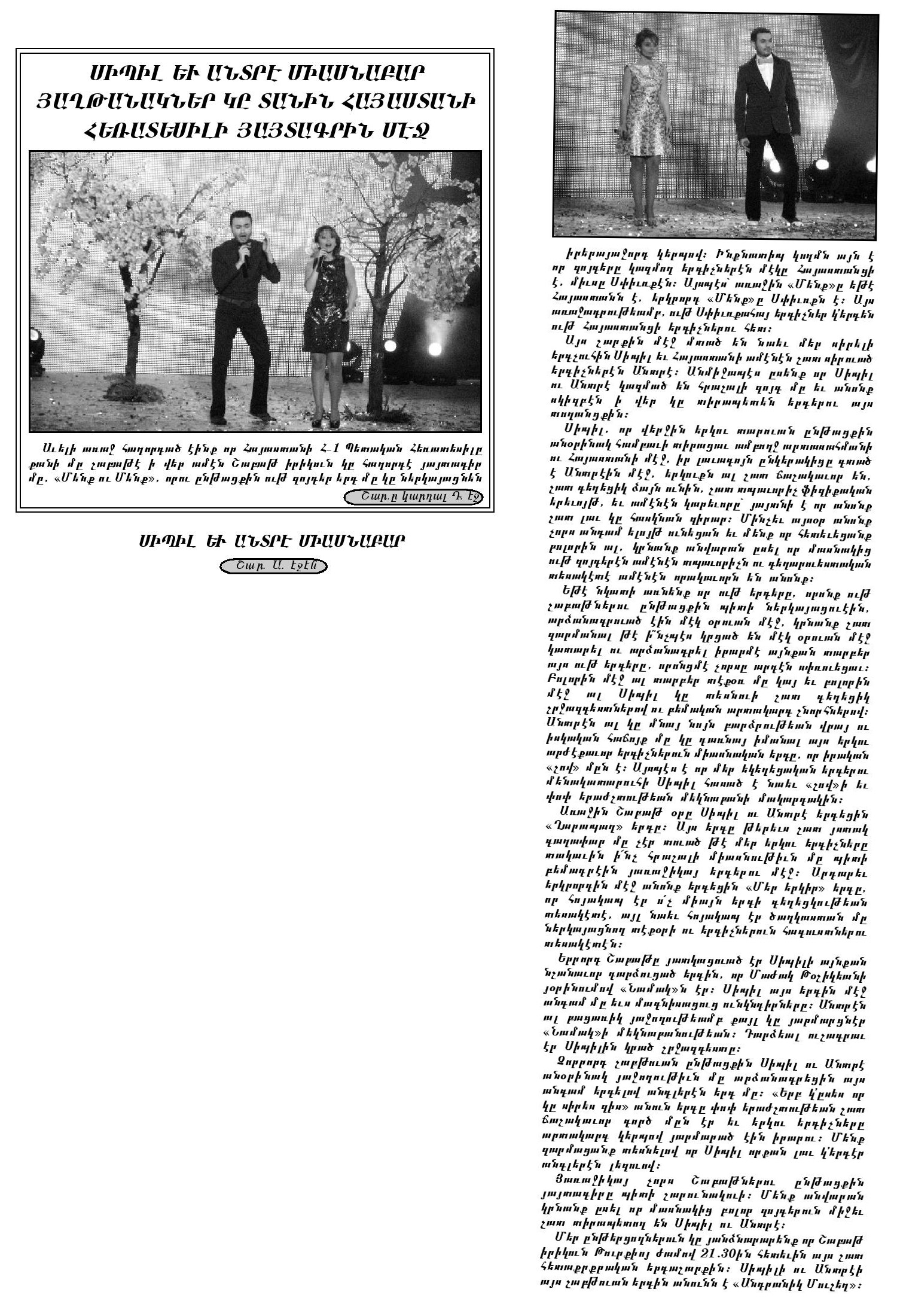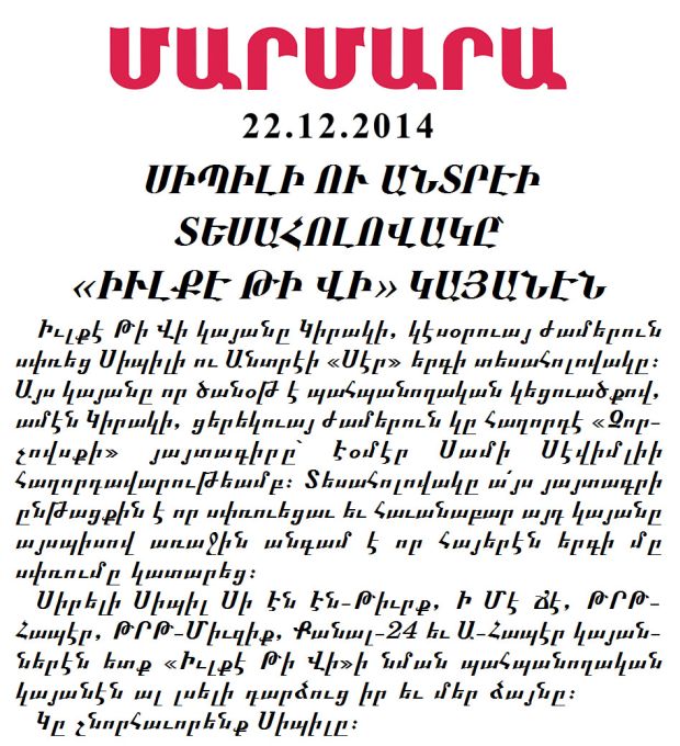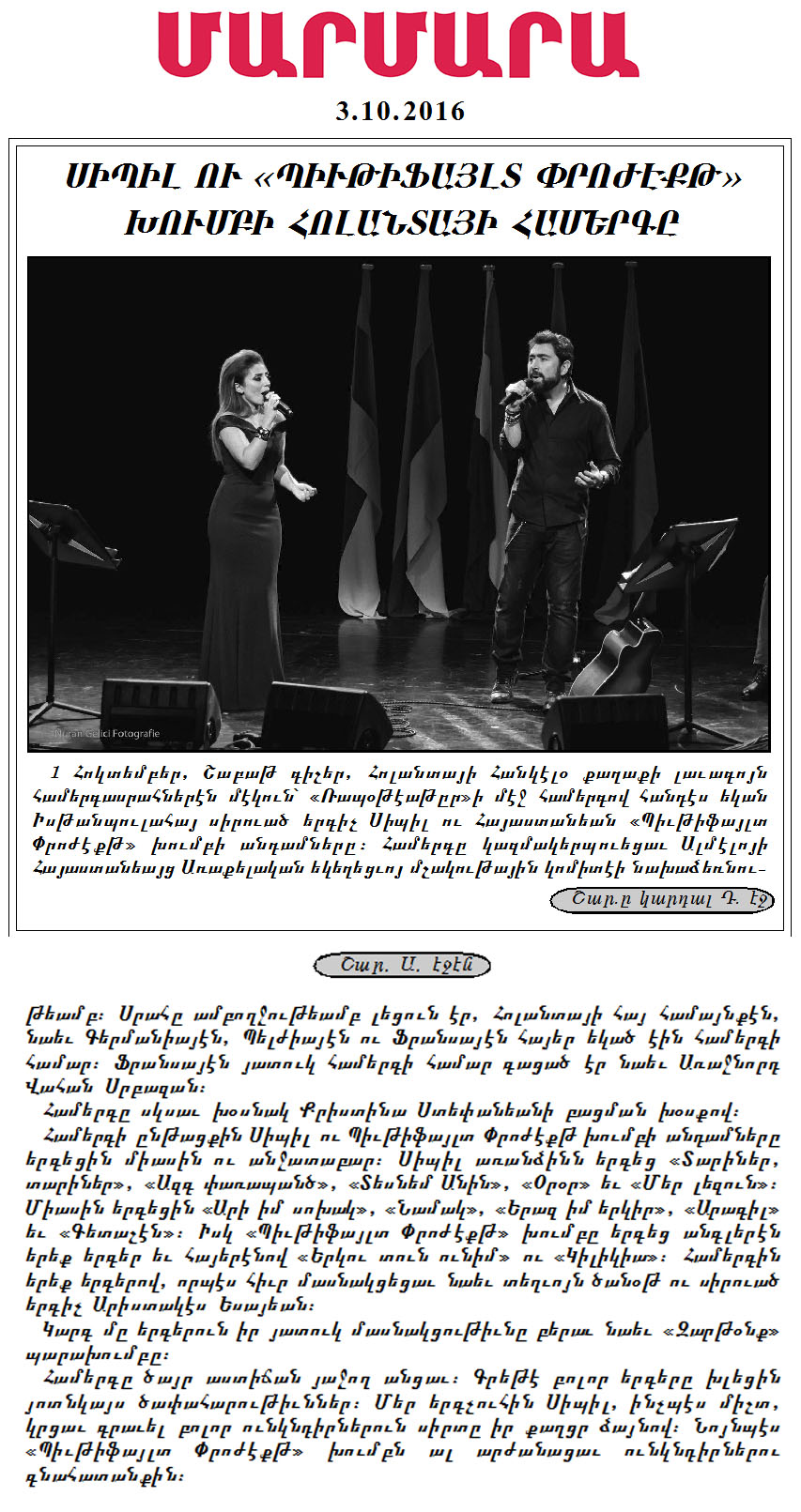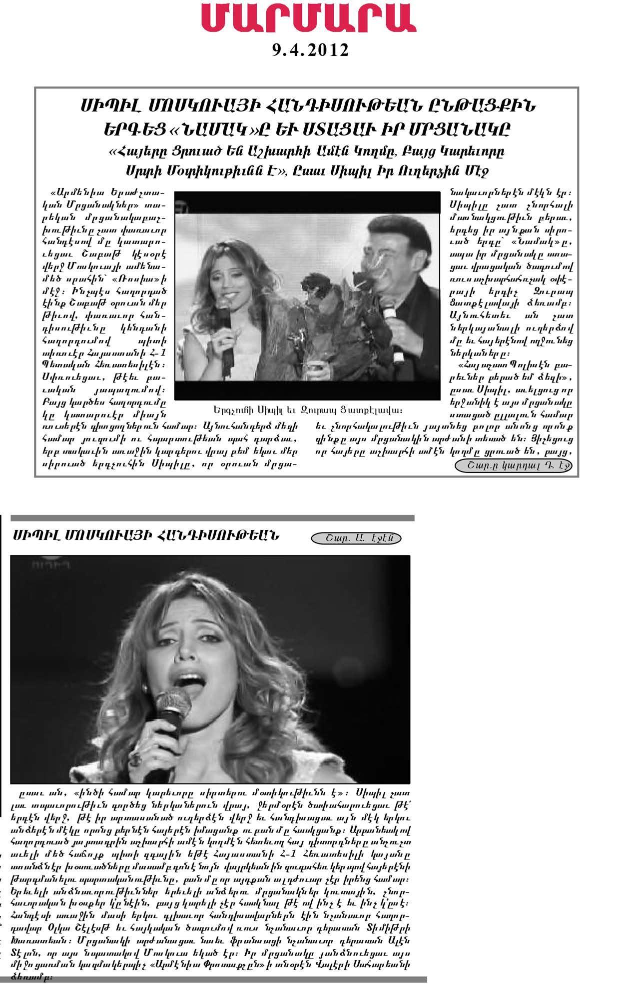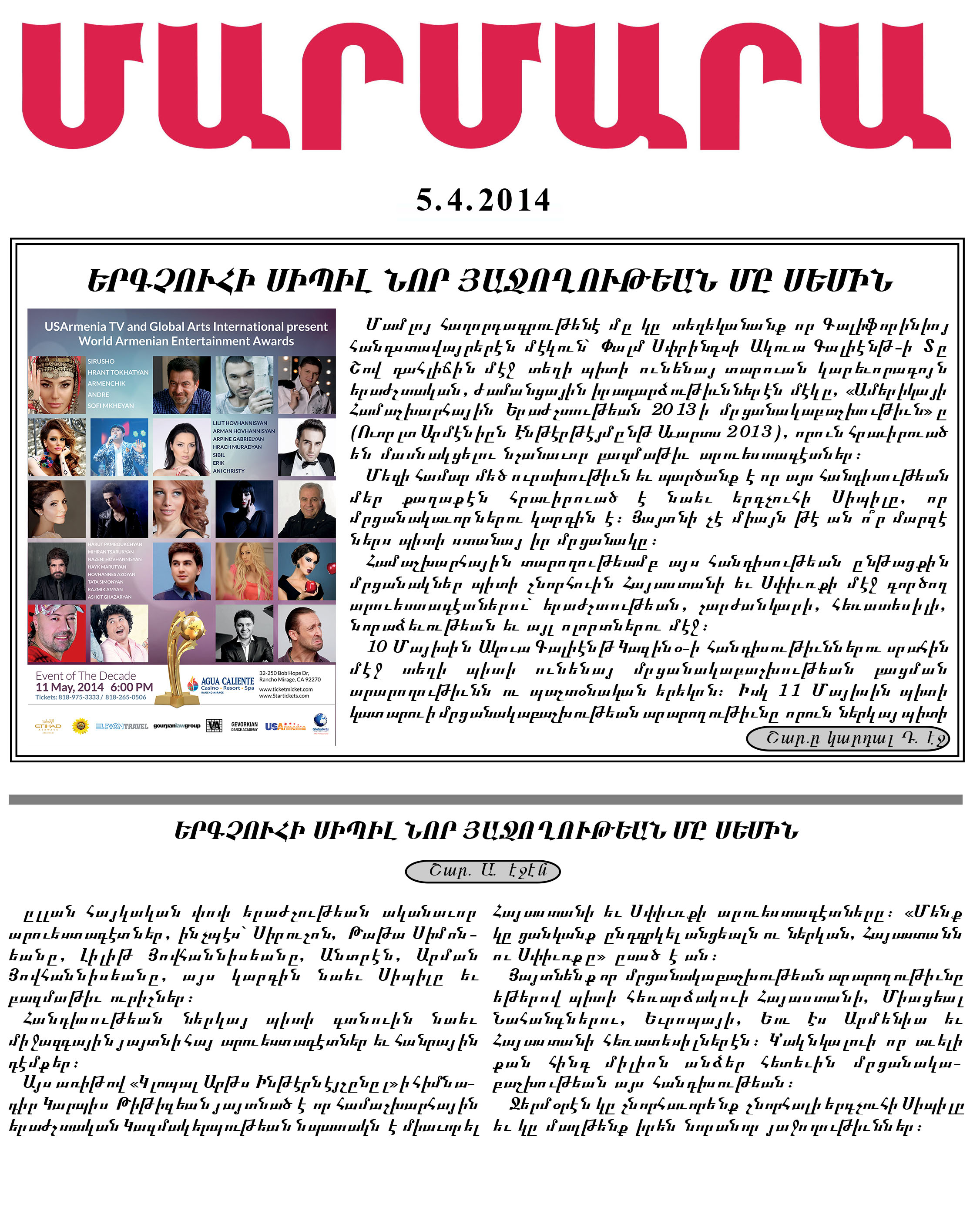 Ağustos 2015’te Ermenistan’ın başkenti Yerevan’da gerçekleştirilen ve ikinci kez davet edildiği Pan-Armenian Olimpiyat oyunlarının açılış töreninde sahneye çıktı. Pan-Armenian oyunlarına sağladığı katkılar sebebiyle Ermenistan Cumhurbaşkanı Serj Sarkisyan tarafından minnet madalyası ile ödüllendirildi.