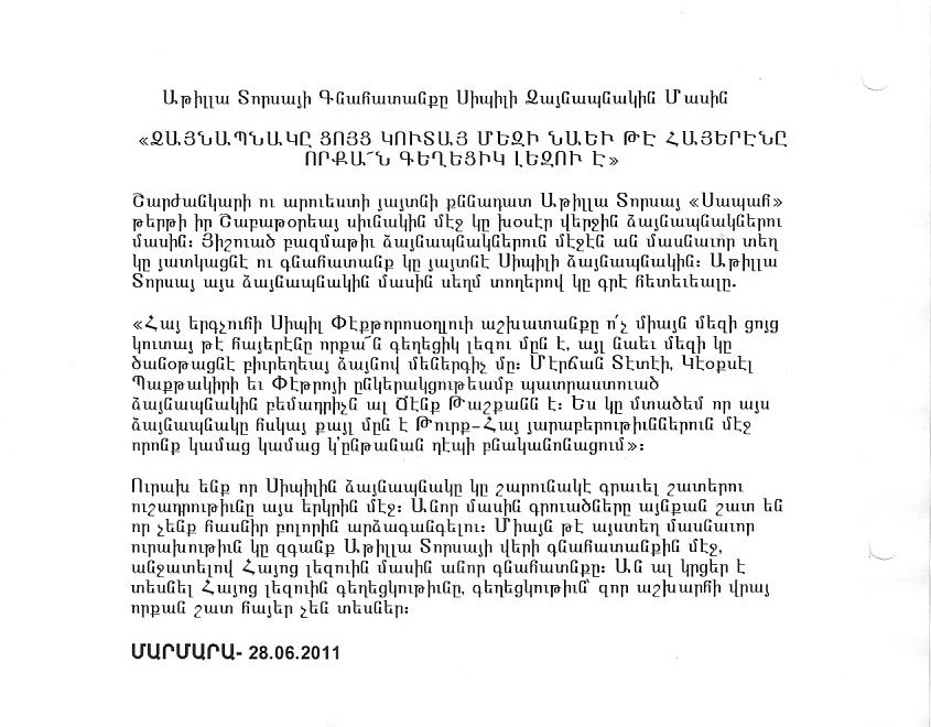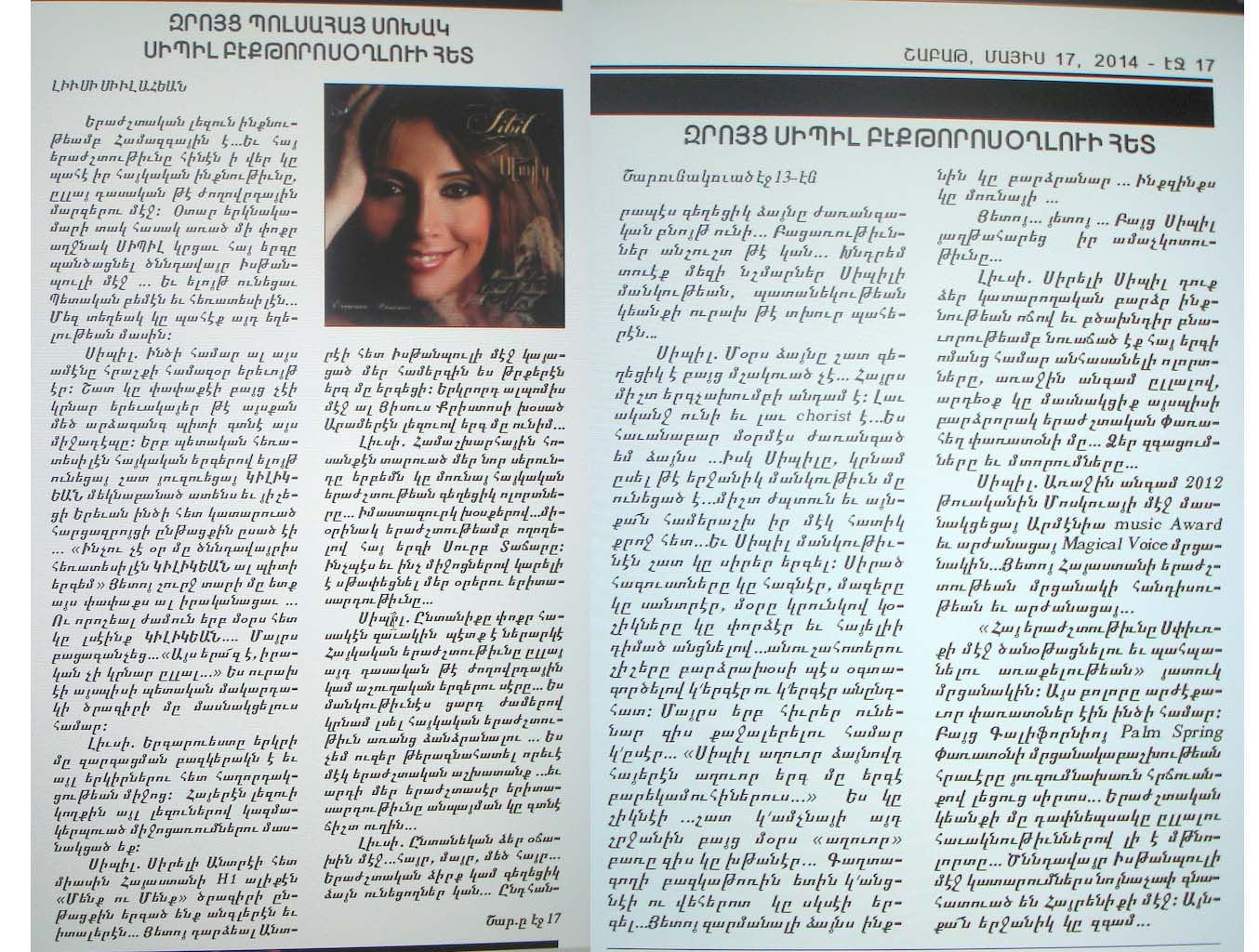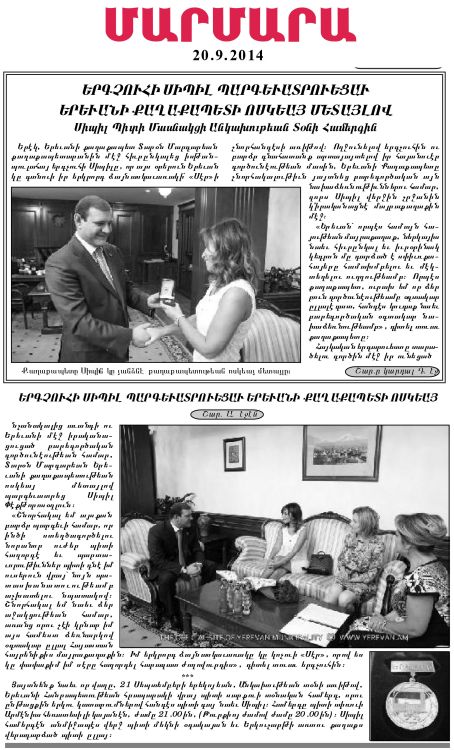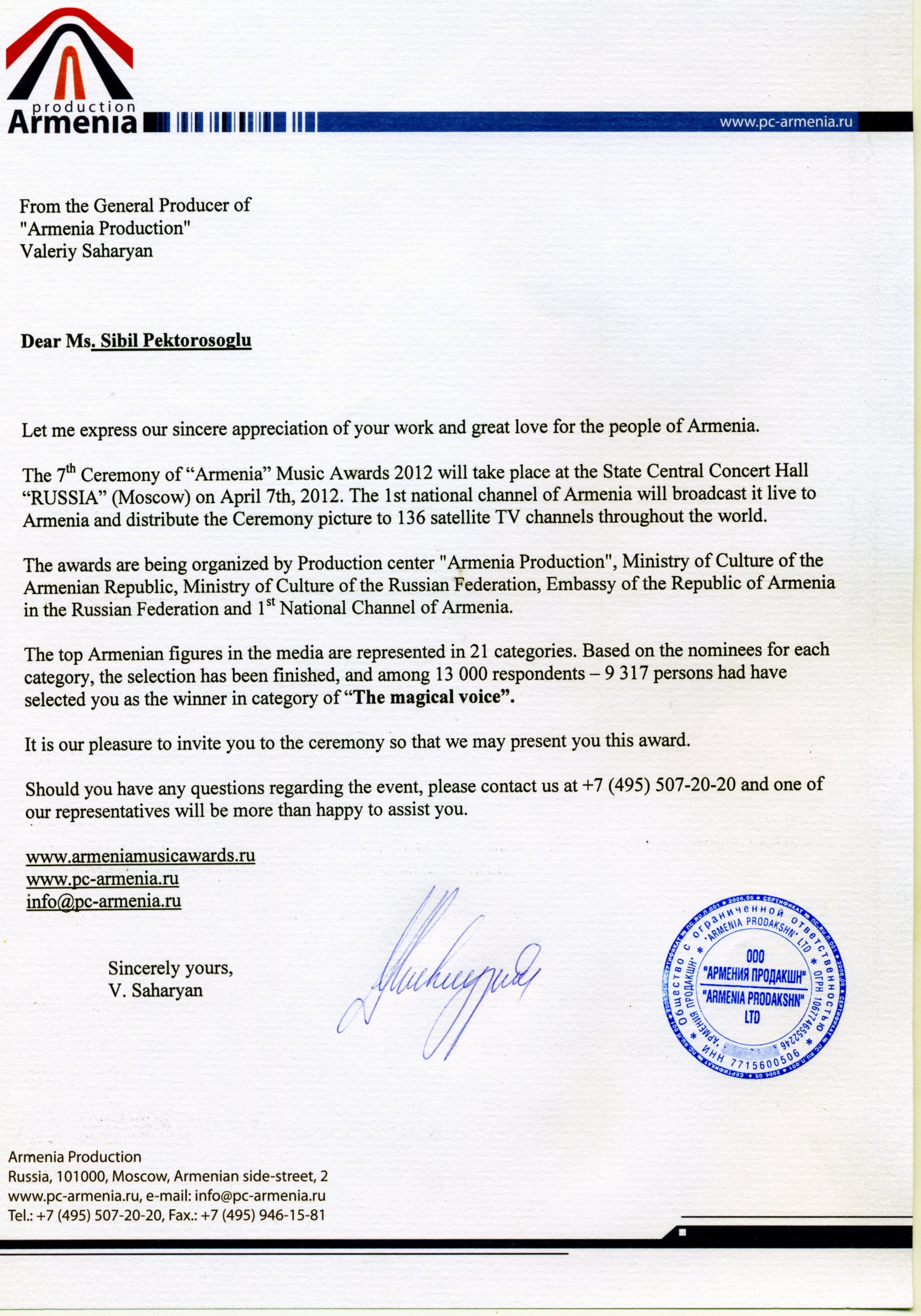 18 Eylül 2014'te Ermenistan’ın başkenti Yerevan’da, belediyenin katkıları ile ''SER'' albümünün tanıtımı yapıldı. Albüm satışlarından elde edilen geliri bir anaokuluna bağışlayan Sibil, yardım çalışmaları ve yaptığı sanatsal katkılar sebebiyle Yerevan’da, Ermenistan Diaspora Bakanı Hranush Hakobyan tarafından “Gomidas madalyası” ve Yerevan Belediye başkanı Daron Margaryan tarafından da “Yerevan Belediyesi altın madalyası” ile ödüllendirildi.