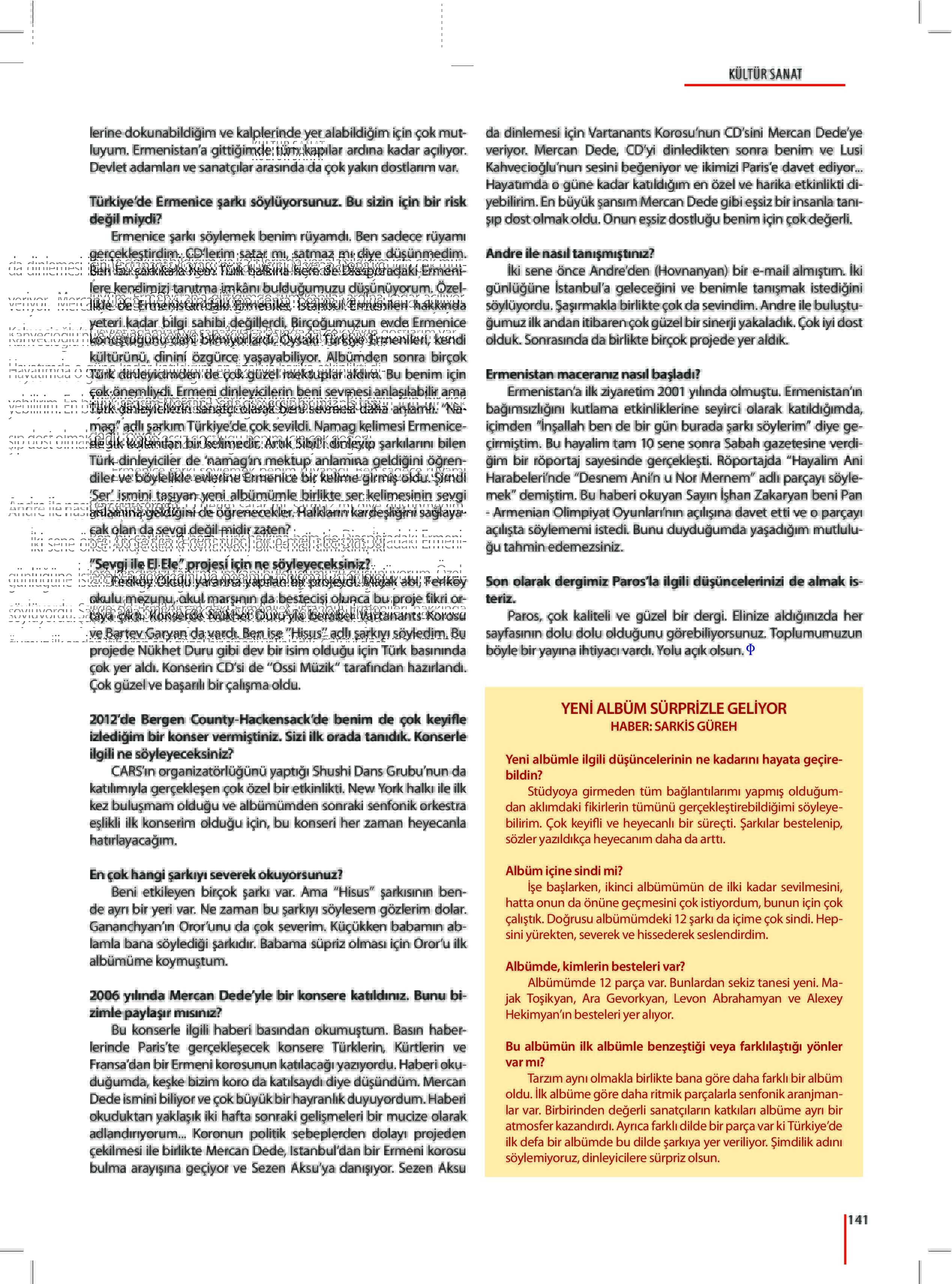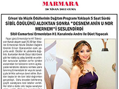 25 Mart 2017’de düzenlenen Tsitsernag Devlet Ermenistan Müzik Ödül Töreni’nde “Ermeni Müziğini Diasporada Tanıtma ve Koruma Misyonu” özel ödülüne ikinci kez sahip olmuştur.