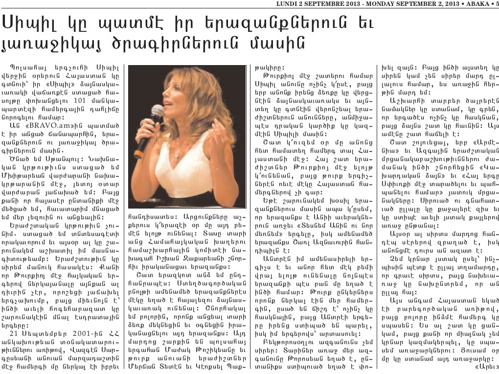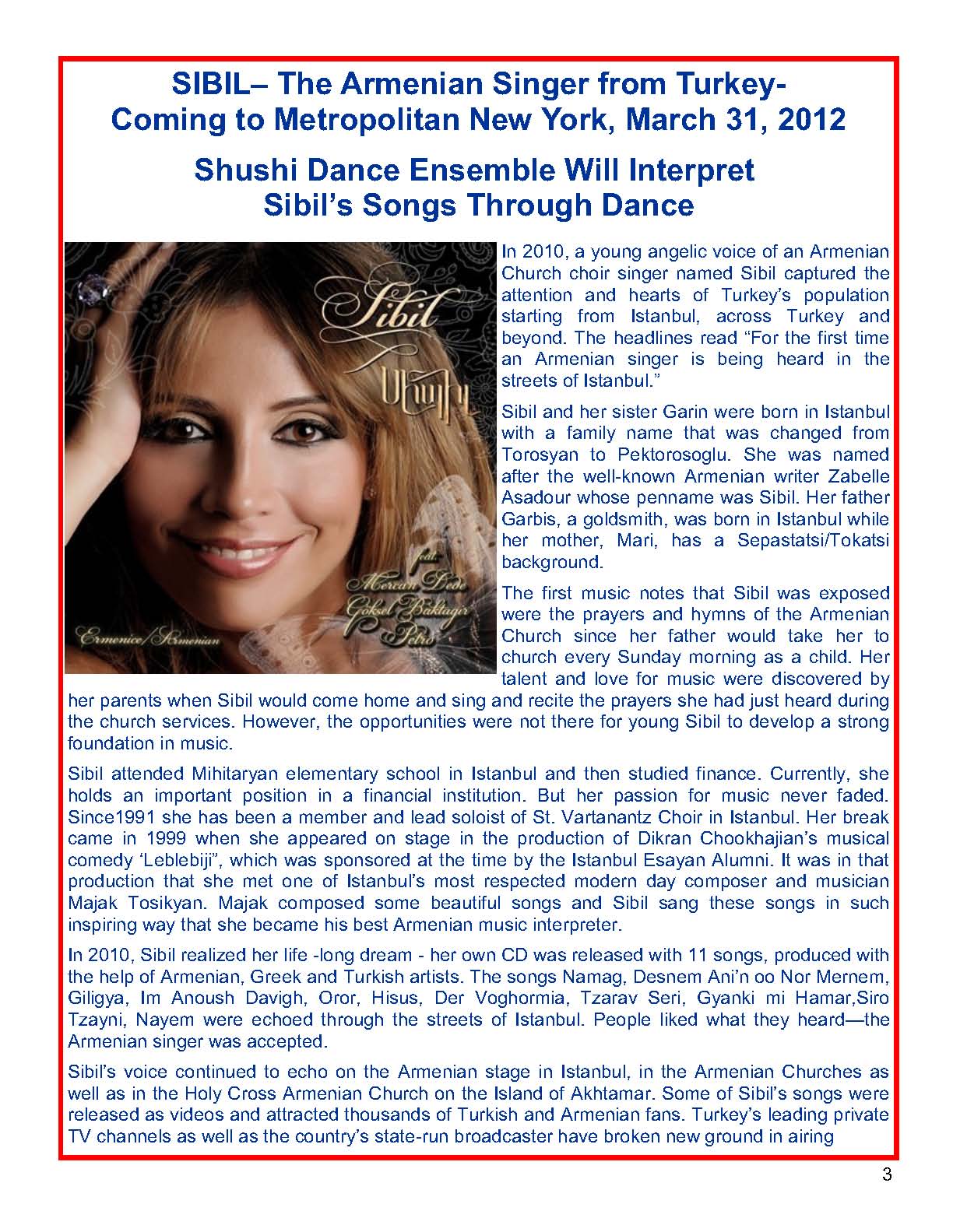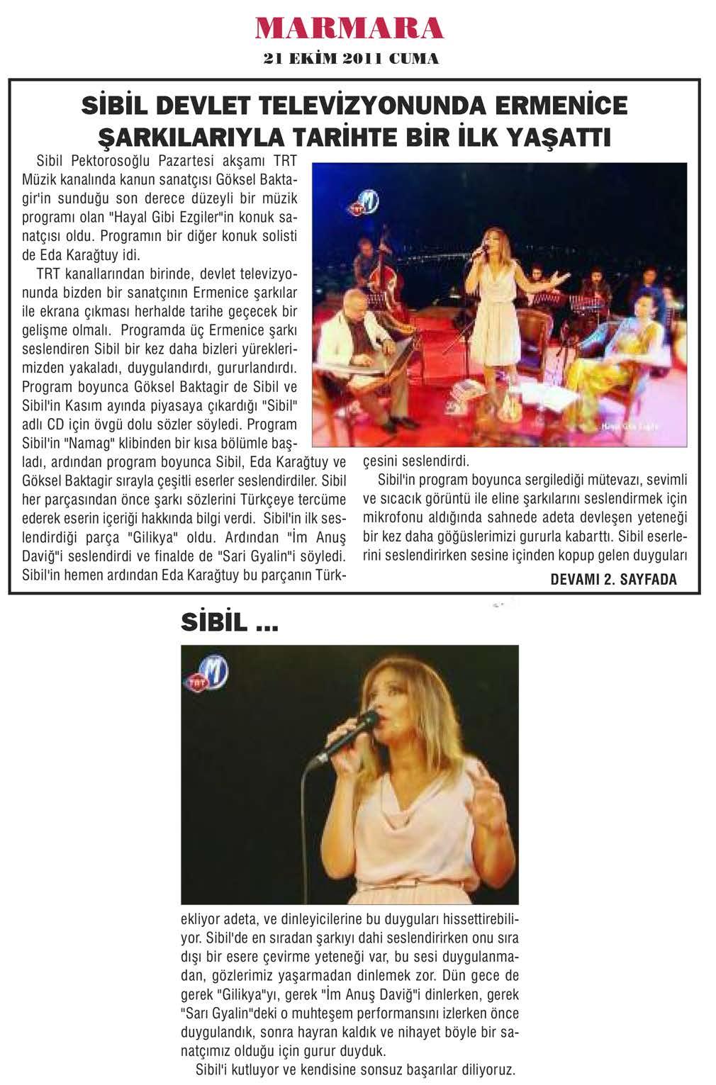 Sibil, Türkiye, Amerika, Kanada, Ingiltere, Hollanda, İran, Lübnan, Ermenistan, Almanya, Rusya, Fransa , Arjantin, Uruguay gibi ülkelerde çeşitli konserler verip, Ossi müzik tarafından basılan “Sibil” ve “SER” adını verdiği albümlere ve onbir tane de gerek Türkiye de, gerek Ermenistan da çekilmiş video klip lere sahiptir.