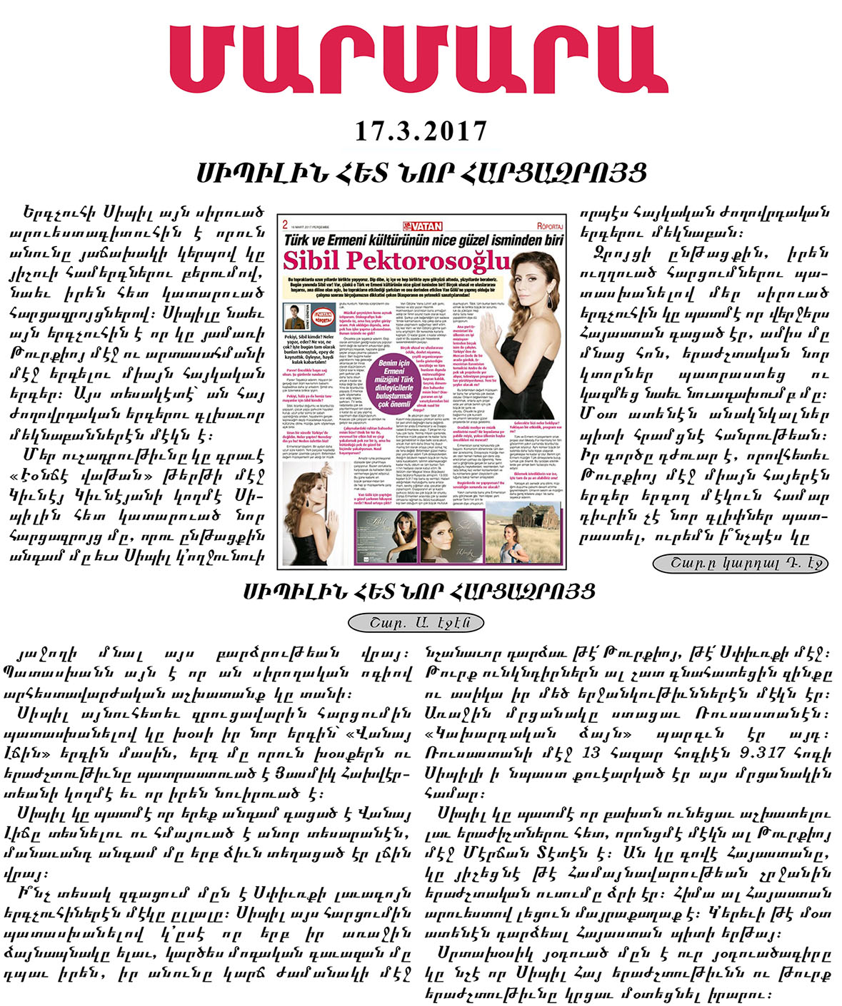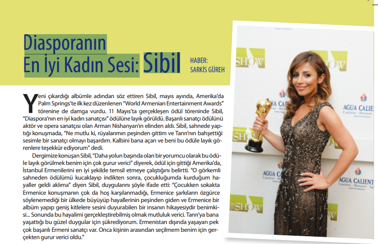 02 Mart 2019 tarihinde Brezilya’nın Sao Paolo şehrindeki Samba’nın geleneksel ve en önemli okullarından biri olan “Rosas de Ouro” nun Ermenistan kültürü ve tarihinin sunulduğu “Yaşasın Ermenistan” – “Viva Hayastan” başlıklı geçit töreninde karnavala Brezilya dışından resmi olarak davet edilen ilk sanatçı Sibil oldu. Sibil aynı sene Güney Amerika ve Avrupa turnesinden sonra Amerika’nın Los Angeles şehrinde düzenlenen özel bir etkinlikte Ermeni müziğine verdiği katkılardan dolayı denetçi Kathryn Barger tarafından belediye adına verilen özel bir onur belgesi ile ödüllendirildi.